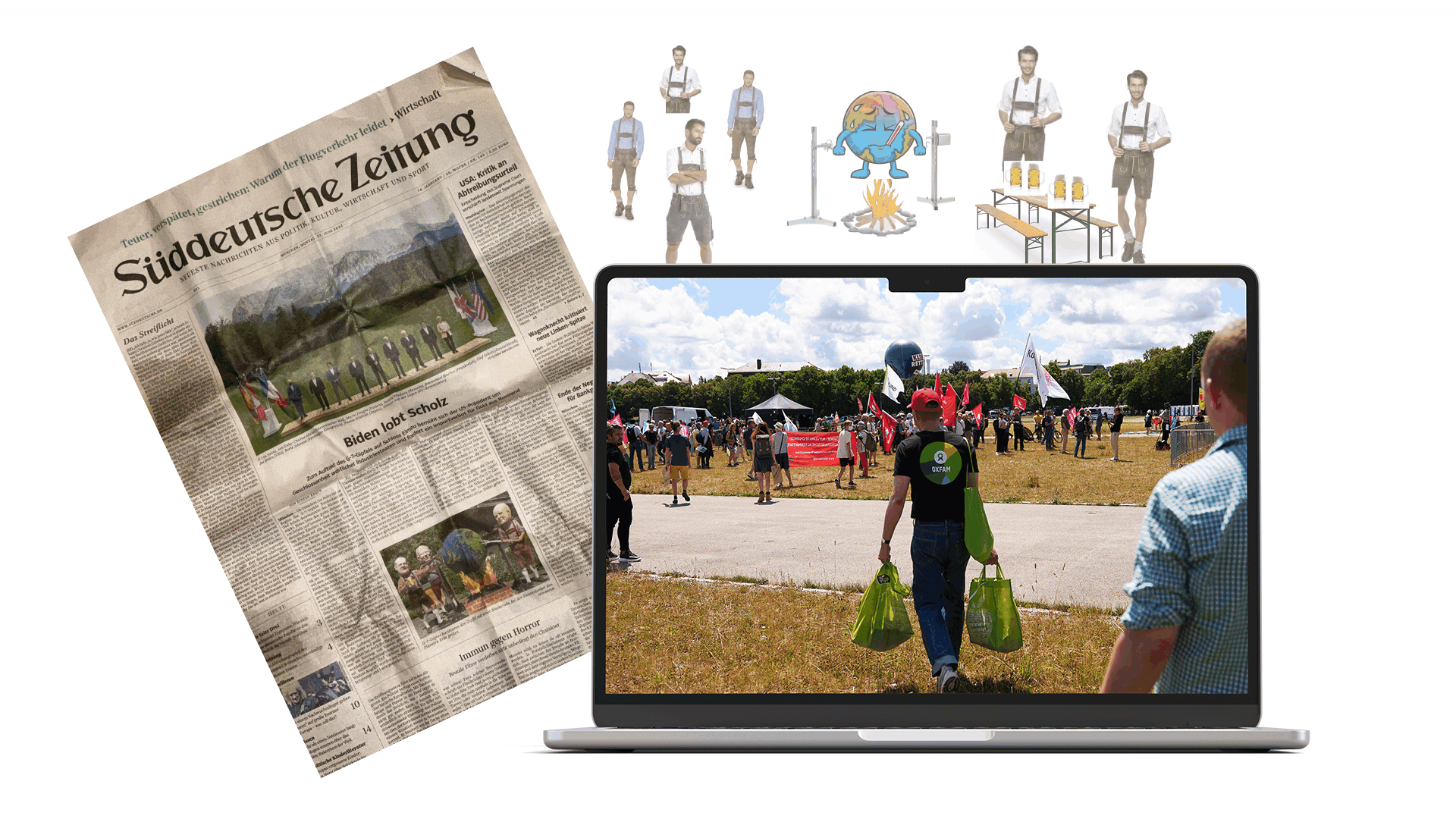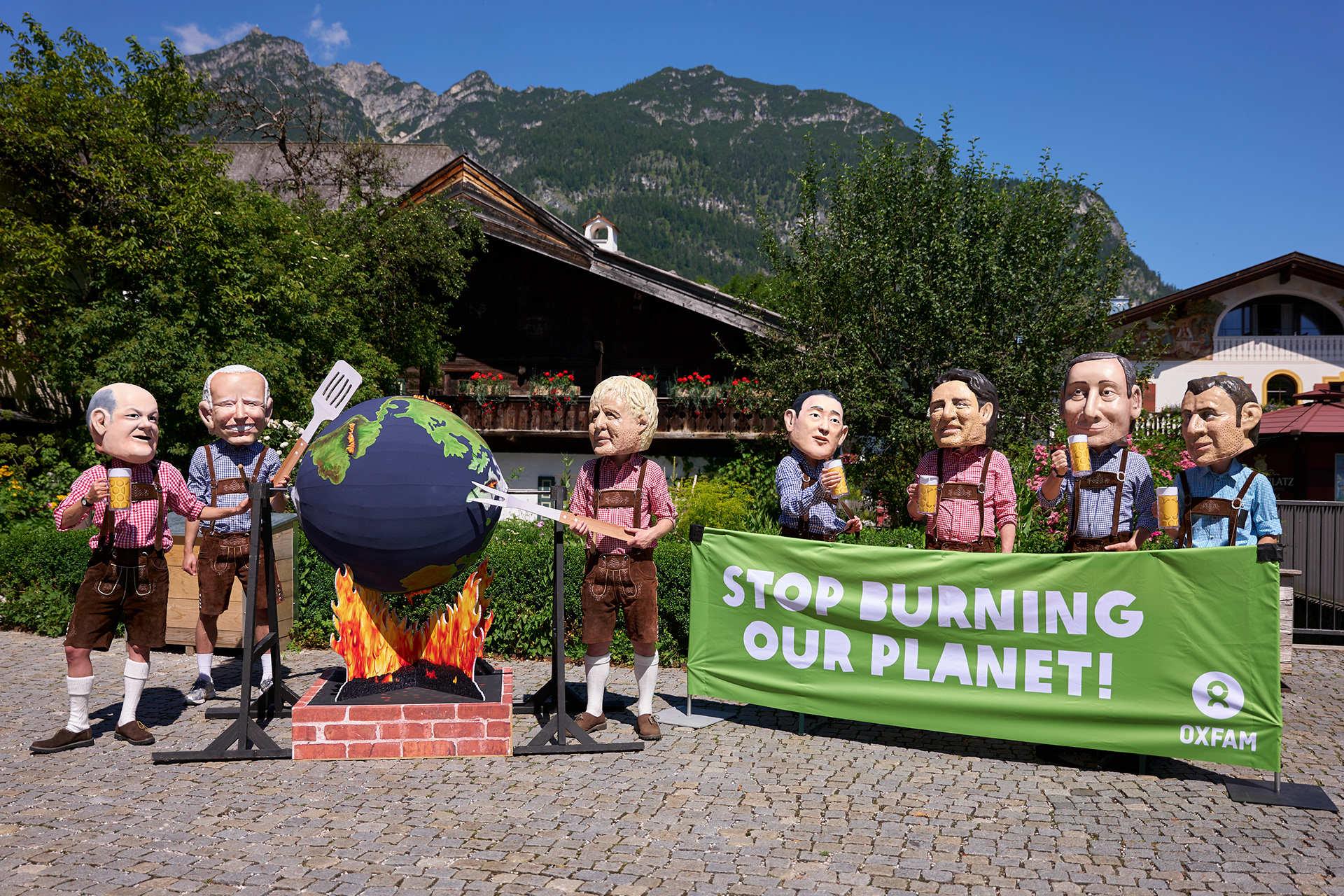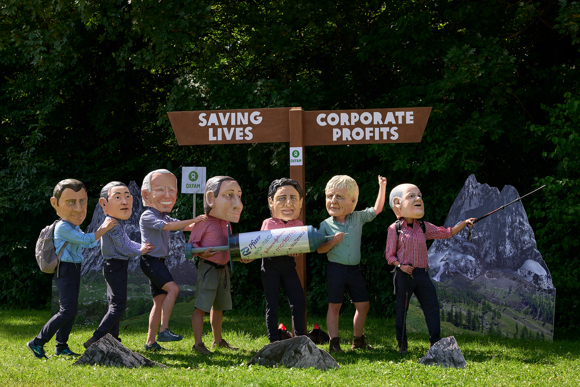 Übergroße Köpfe der Staatsoberhäupter dieser Welt: Die Big Heads sind die Mediastunt-Geheimwaffe von Oxfam. Meistens bei G20- und G7-Gipfeln im Einsatz, werden sie genutzt, um Themen wie soziale und Klimagerechtigkeit anzusprechen. Zum G7-Gipfel in Garmisch-Partenkirchen durfte ich zwei Stunts entwerfen und umsetzen: